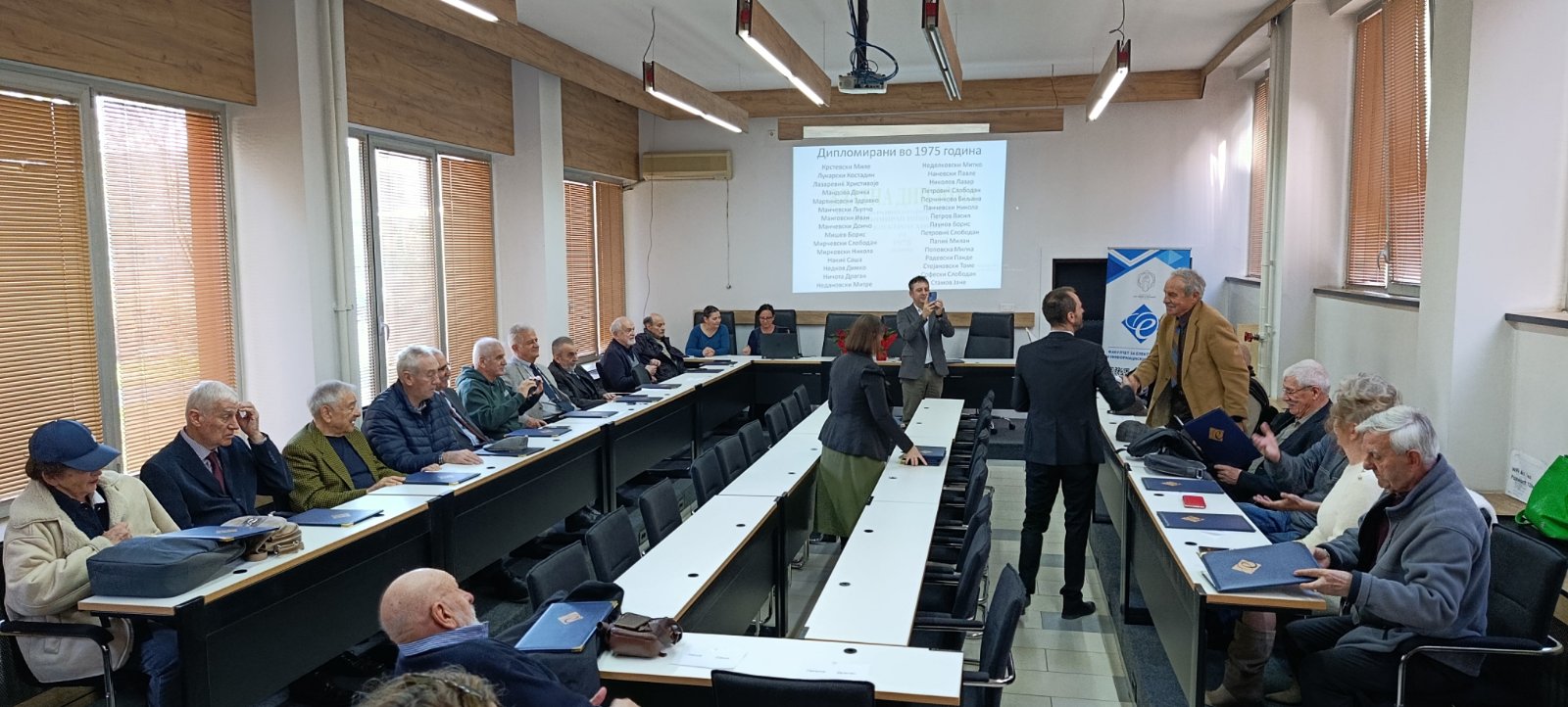 Факултетот за електротехника и информациски технологии (ФЕИТ) во Скопје денеска, 11 декември 2025 година, организираше свечен настан по повод одбележувањето на 50 години од дипломирањето на генерацијата инженери по електротехника од 1975 година.
