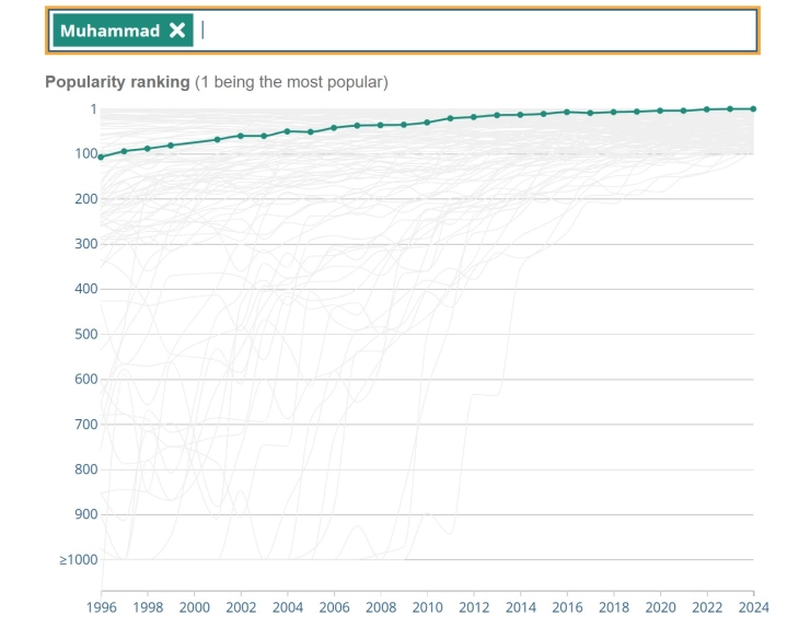 Мухамед и во 2024 година е најпопуларното машко име за бебиња родени во Англија и Велс, втора година по ред.