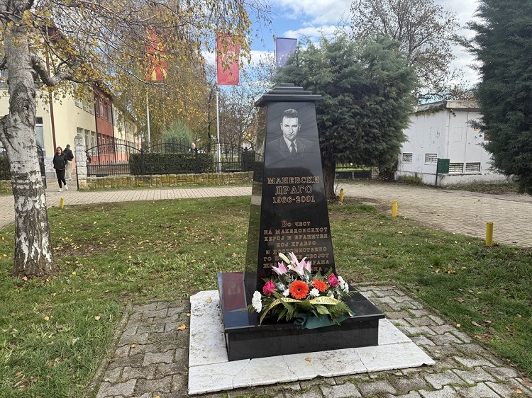 Положено цвеќе пред споменикот на Драго Маневски, македонски бранител и припадник на безбедносните сили